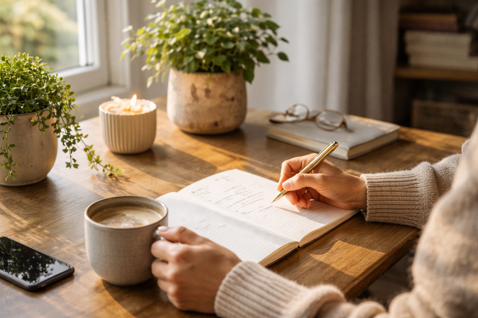 - Alokasikan waktu refleksi 10–15 menit setiap malam melalui journaling sederhana
